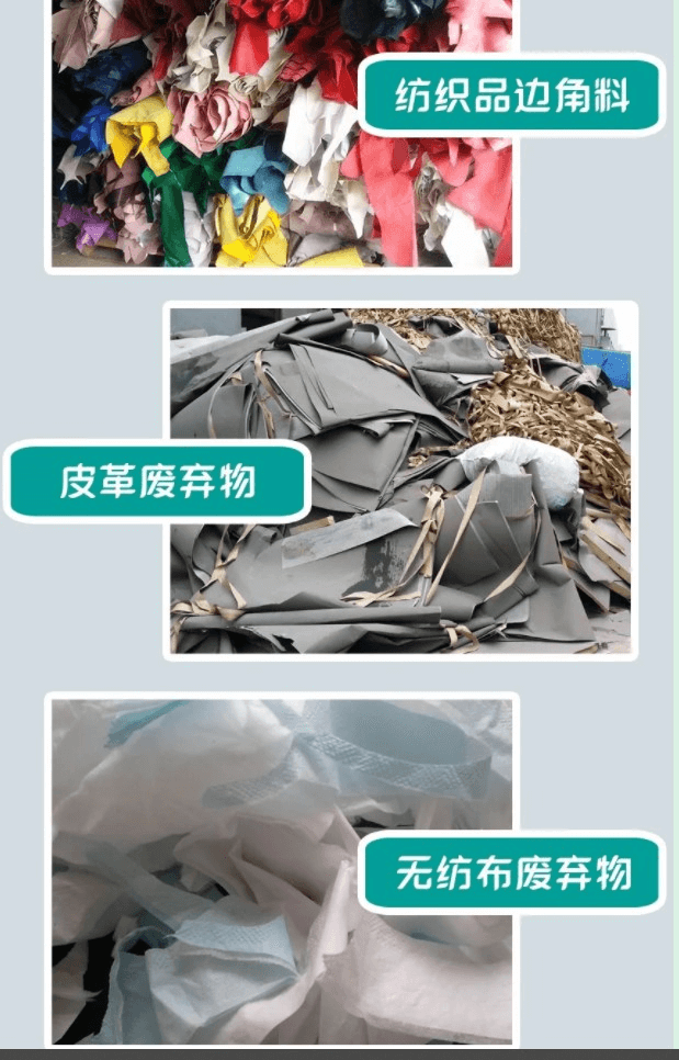 輕工業生產工程中產生的邊角料以及固體廢棄物的處置方式進行簡單的介紹,主要處理的物料包含:紡織品邊角料,皮革廢料,無紡布邊角料等同類型的輕型物料。